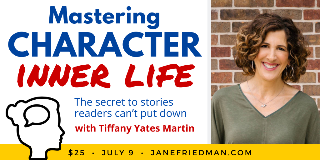 If you want to dig deeper into developing and deepening character interiority, join me with Jane Friedman for my brand-new course, “Mastering Character Inner Life” this coming Weds., July 9, at 1 p.m. ET ($25, with video playback for registrants). Full list of what you’ll learn and what supplemental materials you’ll receive here.