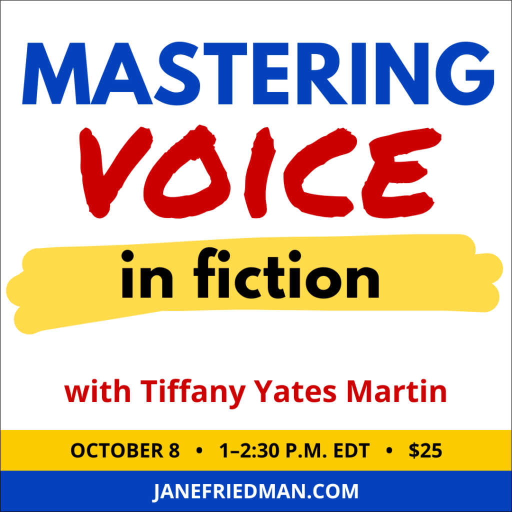 Learn more: “Mastering Voice in Fiction,” with Jane Friedman, new course Oct. 8, with video playback for registrants